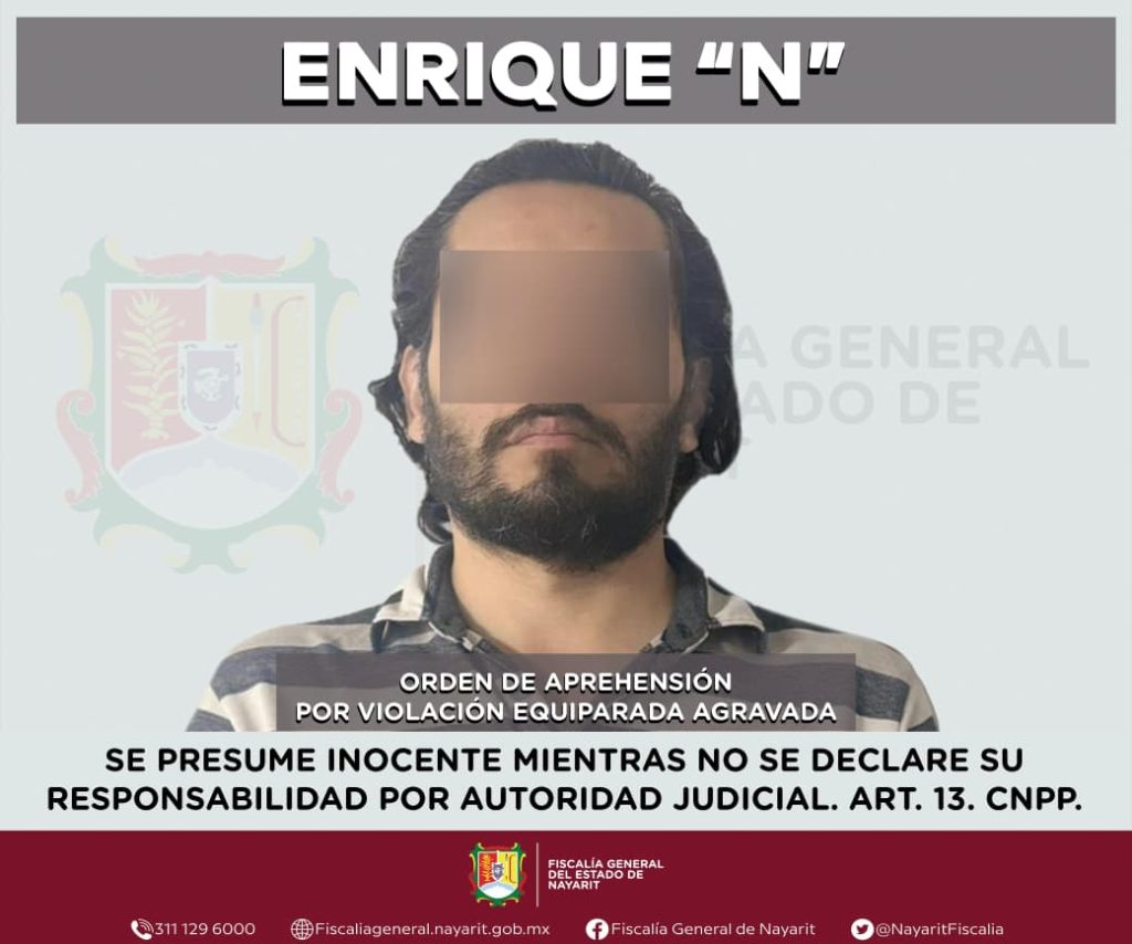 La Fiscalía General del estado de Nayarit informa que elementos de la Agencia de Investigación Criminal ejecutaron una orden de aprehensión en la ciudad de Tepic contra Enrique “N”, por su probable participación en hechos que la ley tipifica como delito de violación equiparada agravada, cometido en contra de dos adolescentes cuyas identidades se mantienen bajo reserva en atención a su derecho a la privacidad e integridad.