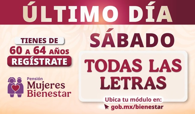 Concluye hoy sábado 30 de agosto el registro a las Pensiones Mujeres y Adultos Mayores: Ariadna Montiel